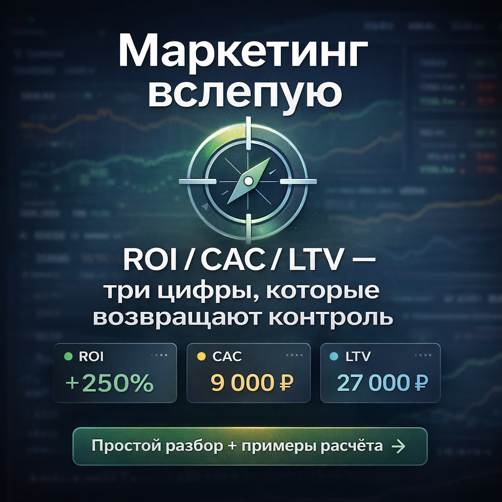 Ты — senior маркетинговый аналитик и финмодельер. Помоги мне посчитать CAC, LTV и ROI так, чтобы я мог(ла) принимать решения по маркетингу и бюджету.КОНТЕКСТ (я заполню)1) Тип бизнеса (услуги / e-commerce / b2b / подписка / другое):2) Средний чек и валовая маржа (в %):3) Повторные покупки: как часто и сколько в среднем:4) Средняя длительность отношений с клиентом (если есть оценка):5) Каналы привлечения (список):6) Расходы за период (месяц/квартал):- реклама:- подрядчики/агентство:- зарплаты маркетинга (или доля):- зарплаты продаж (или доля):- инструменты:- прочее:7) Результаты за тот же период:- лиды:- клиенты (оплаты/договоры):- выручка:- валовая прибыль (если знаешь):8) Длина цикла сделки:9) Нюансы (сезонность, низкий объём данных и т.п.):ЗАДАЧИA) Посчитай CAC (общий и по каналам, если данных хватает).B) Посчитай LTV по валовой марже (упрощённо) и покажи диапазон, если данных мало.C) Посчитай LTV:CAC и объясни, что это значит.D) Посчитай ROI (по валовой прибыли) и укажи период.E) Назови 3 причины, почему метрики могут “врать” в моих данных.F) Дай план улучшений на 4 недели: как снизить CAC, поднять LTV, стабилизировать ROI.G) Дай красные флаги и зелёные сигналы для масштабирования бюджета.ФОРМАТ ВЫВОДА1) Короткий вывод (главное узкое место)2) Таблица CAC / LTV / ROI3) Интерпретация4) План действий на 4 недели5) Какие данные нужно начать собирать, чтобы модель стала точнееЕсли данных недостаточно — задай до 7 уточняющих вопросов одним блоком.Как пользоваться:- Заполните расходы и число клиентов за период.